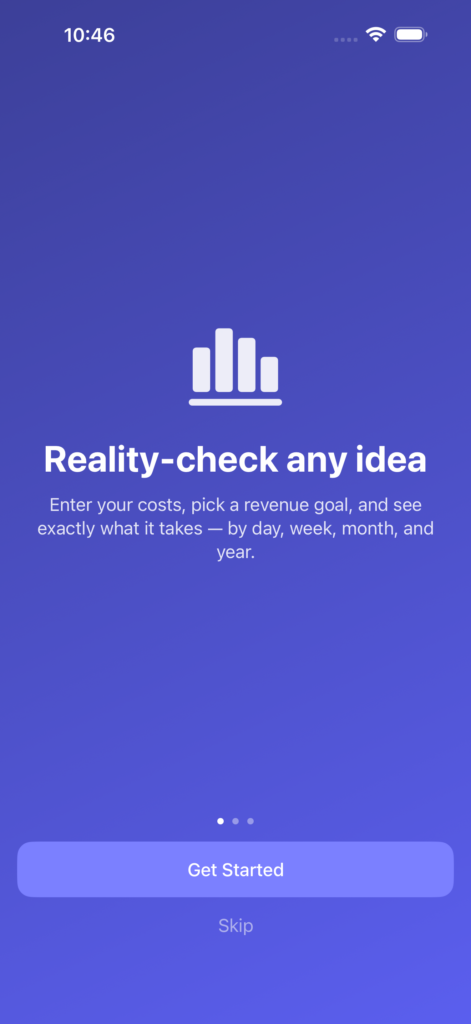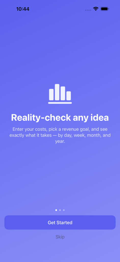 Does your idea actually make money? Enter your costs, set a revenue goal – HowMuch shows you exactly what it takes. Per day, week, month, and year.